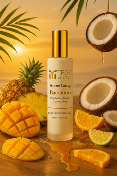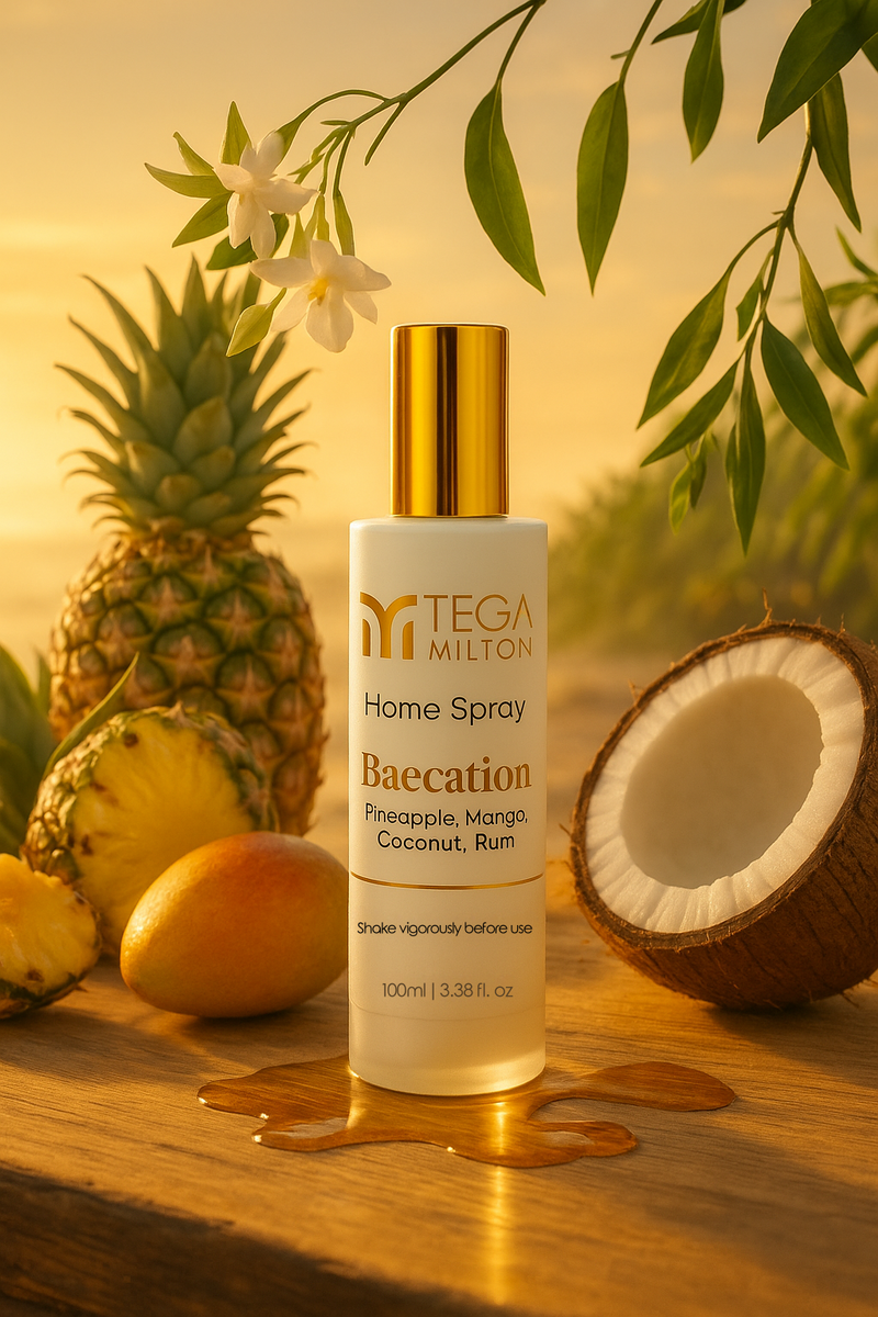 This luxury home spray bursts with the juicy brightness of pineapple, orange, and tangerine, melts into a heart of mango, peach, and sweet pineapple, and finishes with a warm, indulgent base of rum and sugar. Baecation captures the carefree sweetness of a getaway made for two — light, fruity, and fun-loving. Perfect for refreshing your bedroom, guest room, or anywhere you want to add a touch of romance and joy.