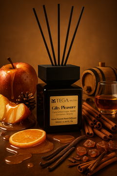 This luxury reed diffuser blends the rich warmth of caramelised sugar, creamy vanilla, and maple with the sophistication of cinnamon and bourbon. Finished with a smooth splash of rum, Gilty Pleasure is the ultimate gourmand home fragrance warm, boozy, and decadently sweet. Perfect for creating a cozy yet upscale atmosphere in your living room, bedroom, or office.