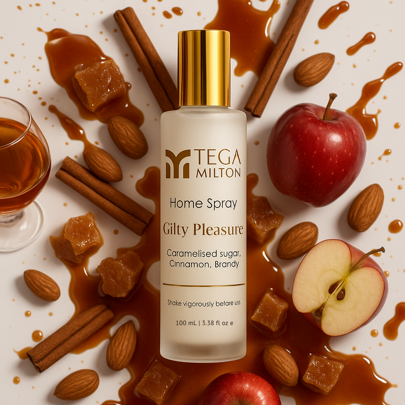 This luxury home spray blends the rich warmth of caramelised sugar, creamy vanilla, and maple with the sophistication of cinnamon and bourbon. Finished with a smooth splash of rum, Gilty Pleasure is the ultimate gourmand home fragrance warm, boozy, and decadently sweet. Perfect for creating a cozy yet upscale atmosphere in your living room, bedroom, or office.