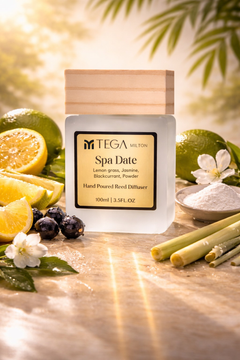Spa Date opens with a refreshing blend of lemon, lime, and lemongrass, instantly uplifting the senses. At its heart, jasmine and black currant are gently sweetened with soft sugar, creating a soothing, spa-like ambience. The fragrance settles into a subtle base of patchouli and powder, leaving your space feeling clean, serene, and beautifully balanced.